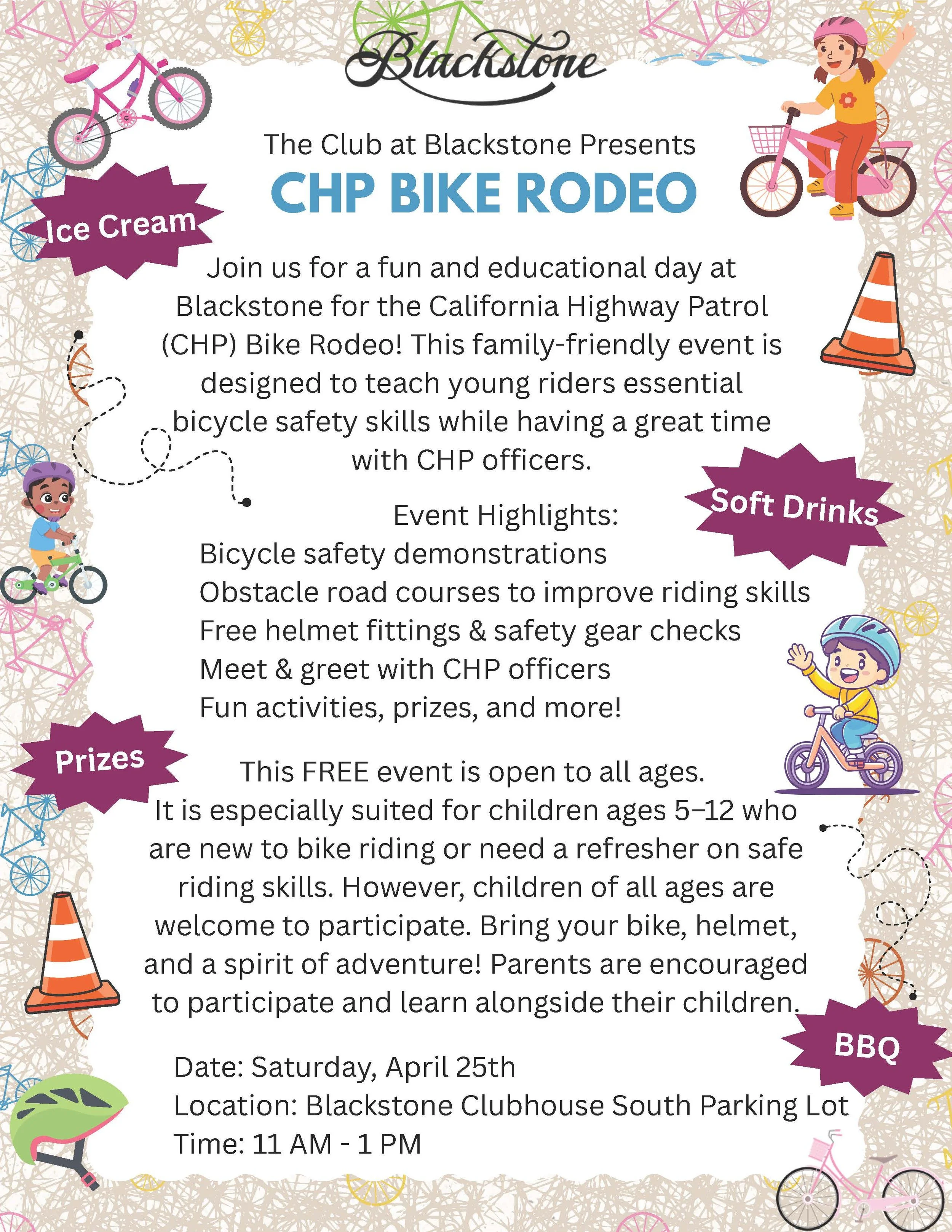 Join us at the Clubhouse for the CHP Bike Rodeo — a free, educational event focused on bike safety.